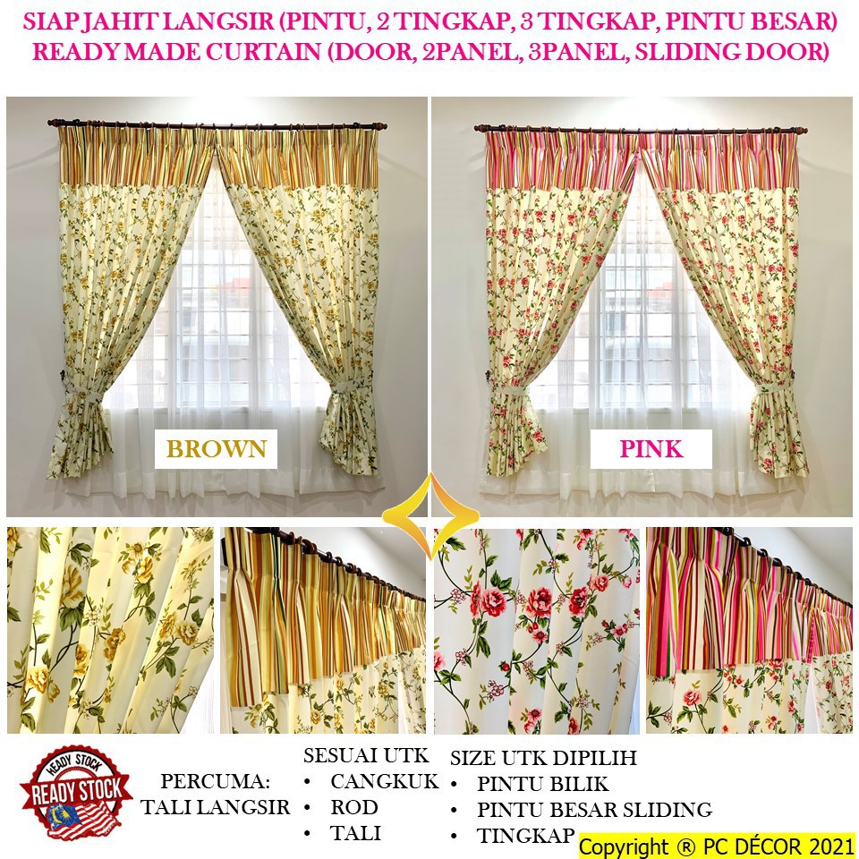 Langsir Curtain Siap Jahit Untuk Pintu Tingkap Cantik Boleh Guna Hook Jenis S Kayu Tali Dawai Lazada